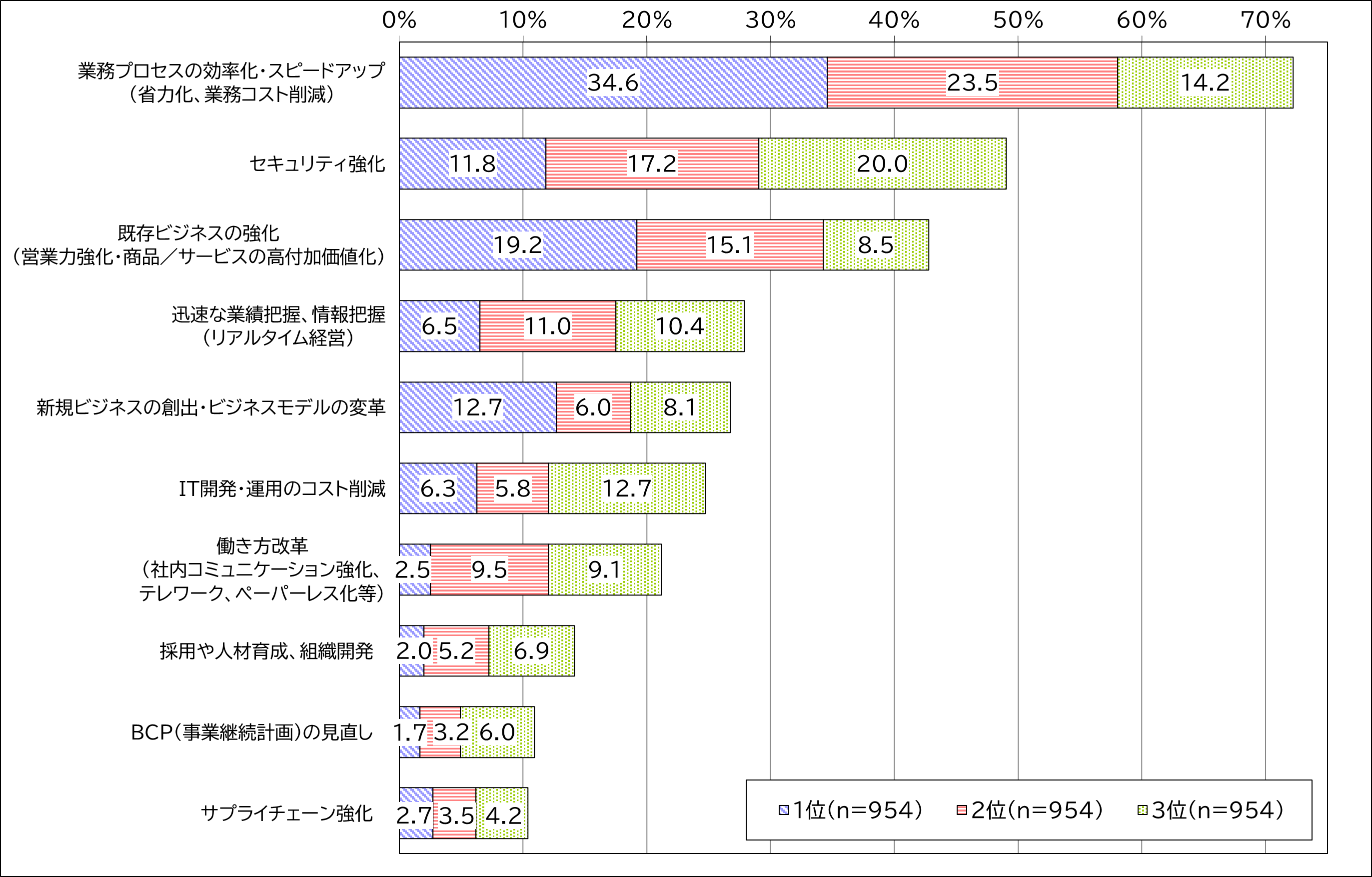 図6 IT投資で解決したい現在直面している経営課題(1位・2位・3位)